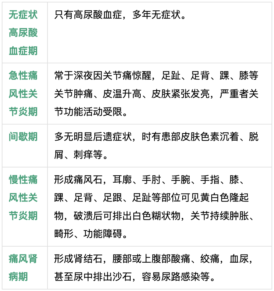 高尿酸血症到肾穷乏只须五步, 无数患者痛风发作前已有5-7年的高尿酸血症。从高尿酸血症发展到痛风,不是短时辰的事,或者可履历以下五个本事: